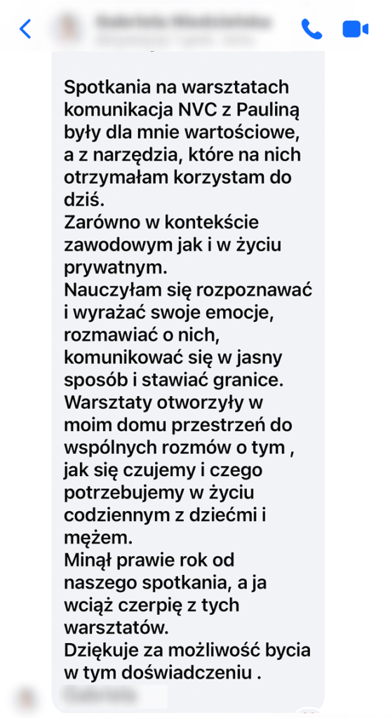 Skontaktuj się ze mną, aby wybrać i zorganizować w Twojej przestrzeni warsztaty które pomogą Ci rozwiązać konflikty, poprawić porozumienie i zbudować relacje pełne empatii i zrozumienia.