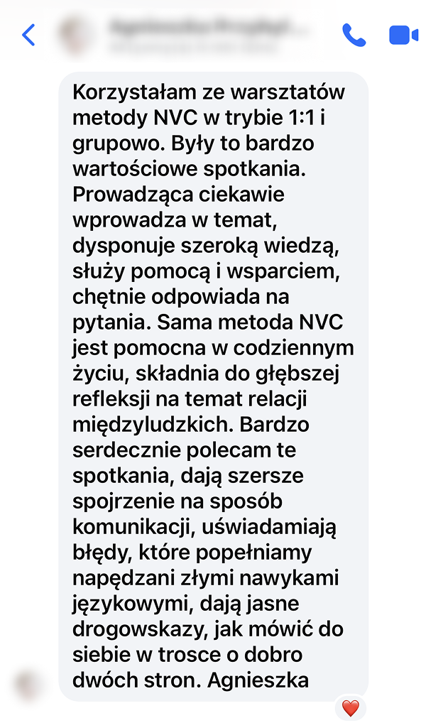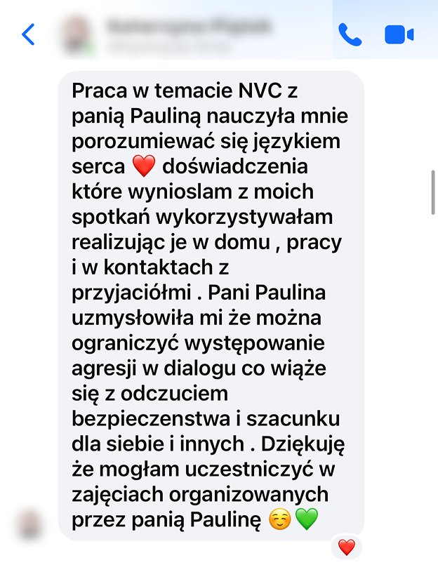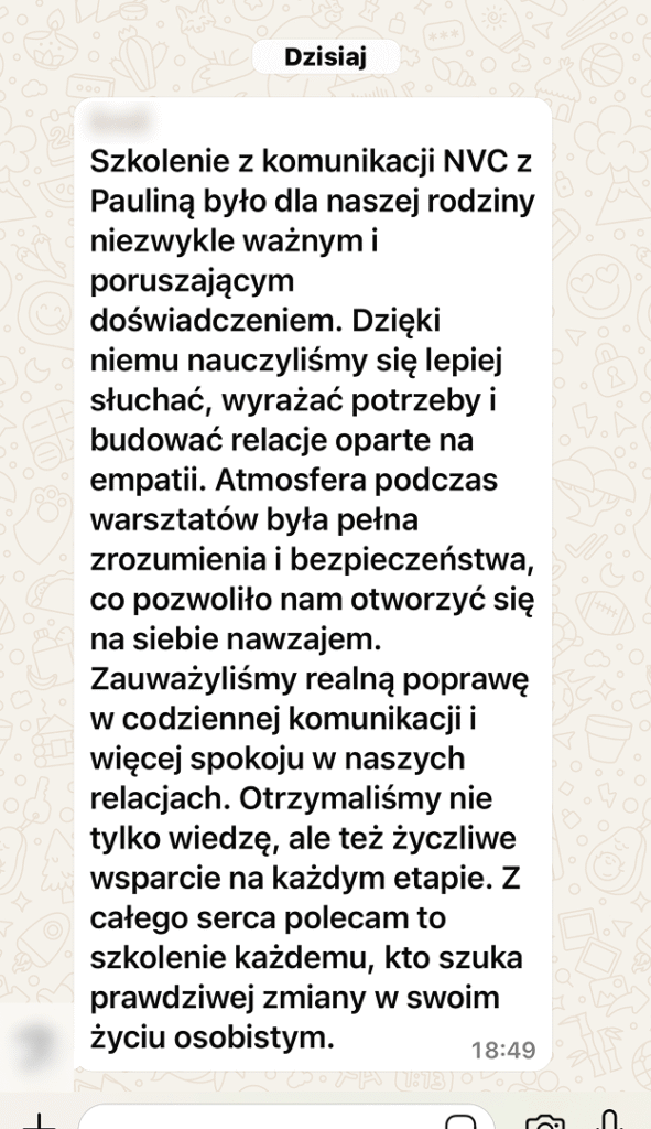 Pomagam parom nauczyć się komunikacji opartej na empatii (NVC), dzięki czemu mogą lepiej się rozumieć i budować silniejszą relację. Wspólna nauka pozwala unikać konfliktów, wyrażać potrzeby bez oskarżeń i znaleźć rozwiązania dobre dla obu stron.